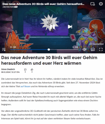 Campagne de relations presse et influence pour 30 Birds (Arté) en France, Royaune-Uni, Alleamgne et US.
