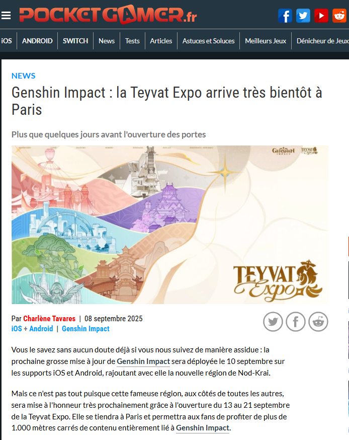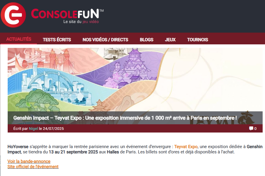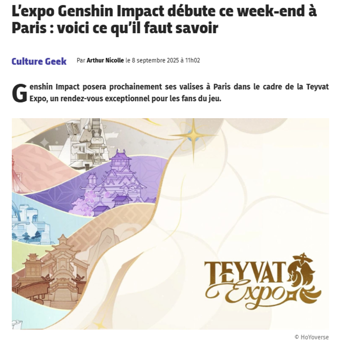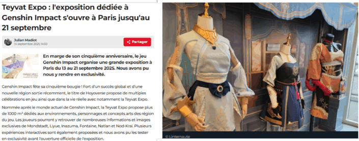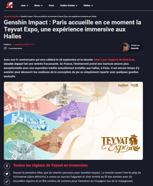 From September 13 to 21, 2025, HoYoverse brought the world of Genshin Impact to life with Teyvat Expo, an exhibition in the heart of Les Halles in Paris.