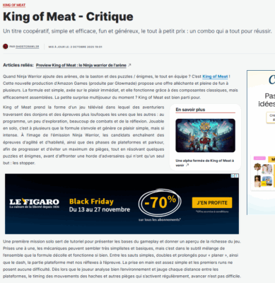Campagne de relations presse en France pour King of Meat, édité par Amazon Game Studios.